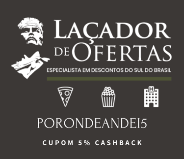 🎁O cupom PORONDEANDEI5 vale para todo o site e usando ele você recebe 5% de volta do valor pago em todas as suas compras. Ele é acumulativo com os cupons de descontos e funciona como um crédito extra pra você abater nas suas compras.