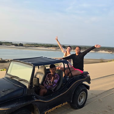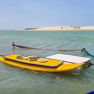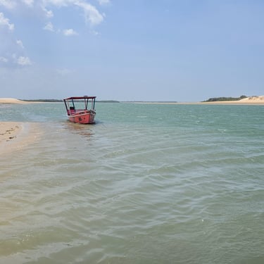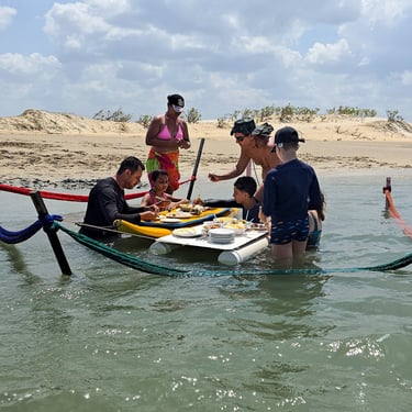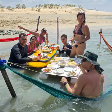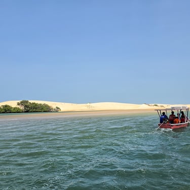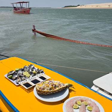 Um tour de barco pelo rio Aratuá, onde você visita dunas, salinas, mangues, e faz paradas pra banho incríveis ! E o almoço é um verdadeiro banquete !