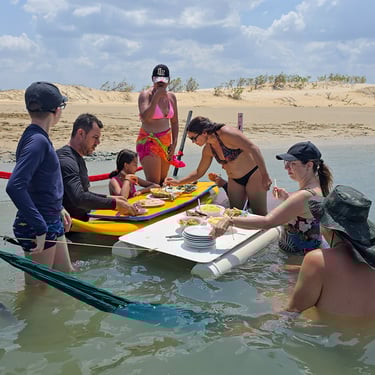 Passamos por uma salina, mangues, banco de ostras e tem almoço incluído com esse cenário paradisíaco.