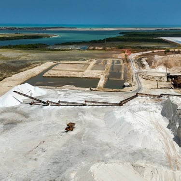 Essas milhares de toneladas de sal extraídas aqui são enviadas pro terminal salineiro de Areia Branca